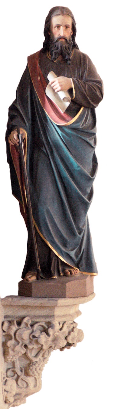 Setzt man sich mit den Details der Innenraumgestaltung ein wenig auseinander, fallen darüber hinaus unweigerlich die vielfältigen Weinreben, -trauben und -blätter auf. Sie finden sich in Holz geschnitzt an den Seiten der Kirchenbänke, aus buntem Glas in den Fenstern, in Stein gehauen um den Taufstein und als Sockel der Jakobus-Figur, in Metall getrieben und geschmiedet im Treppengeländer zur Empore, in den Türbändern und sogar in den unterschiedlich geformten Türklinken wieder.